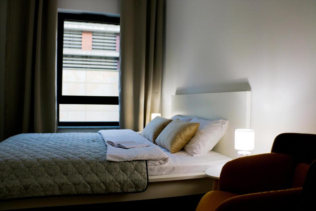 Nowoczesny apartament z oddzielną sypialnią, jasnym salonem i w pełni wyposażonym aneksem kuchennym.